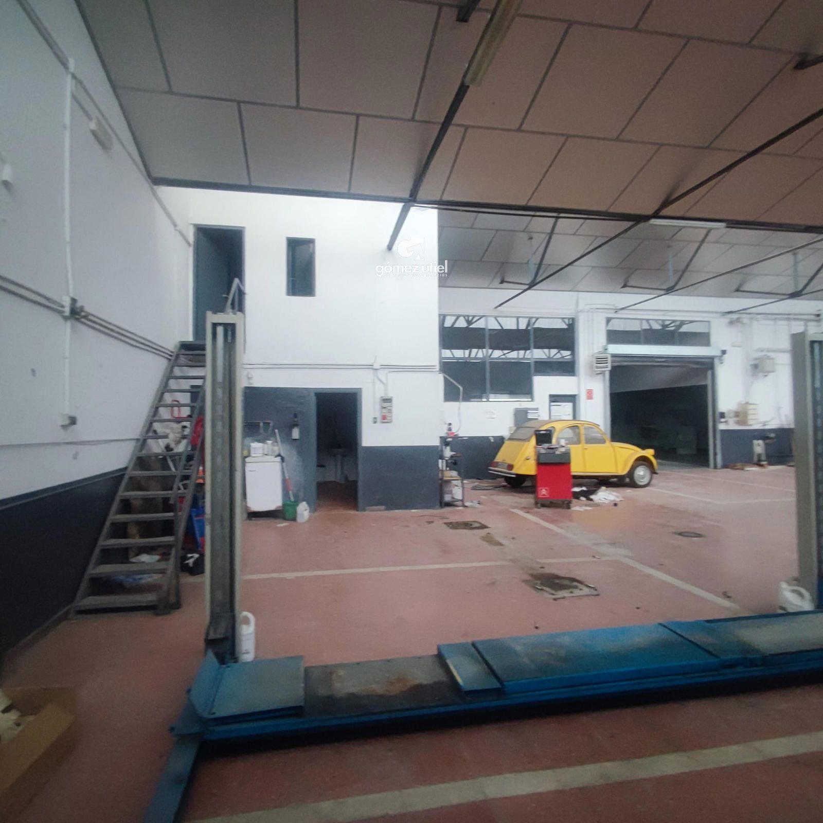 Taller equipado con elevadores y zona de trabajo definida, con pavimento industrial y buena iluminación.